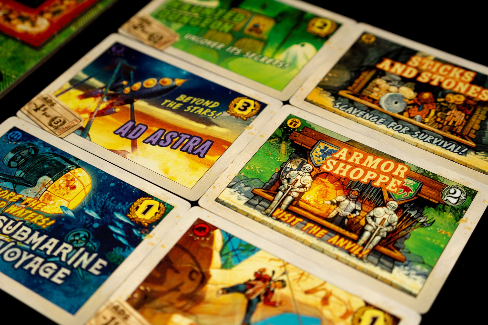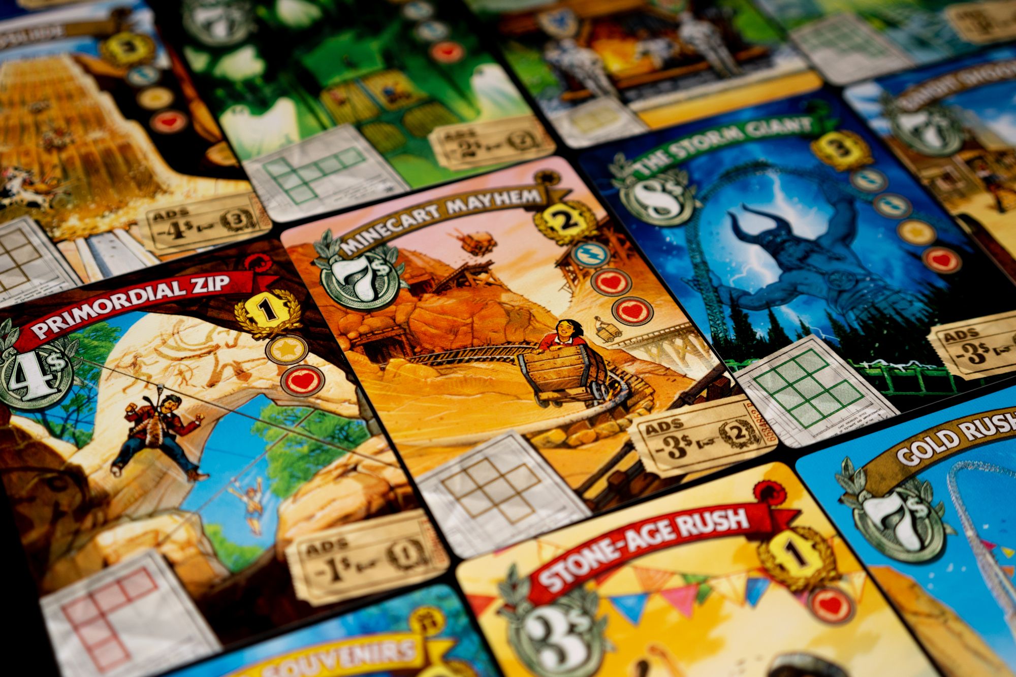 Thunderworks Games usually does not disappoint with their production quality. Tenpenny Parks is definitely no exception. The cardboard is super thick and durable. It has beautiful wooden trees and meeples and the card stock is absolutely fantastic. They couldn't have done a better job and I was properly impressed when I first opened the box. This makes handling all the components a joy and fantastic experience. It almost feels like a deluxified Kickstarter edition. All this and combined with the always beautiful and unique artwork by Vincent Dutrait make it an absolute gorgeous game. I just wish there were even more different attractions in the game as each attraction card is stunning.