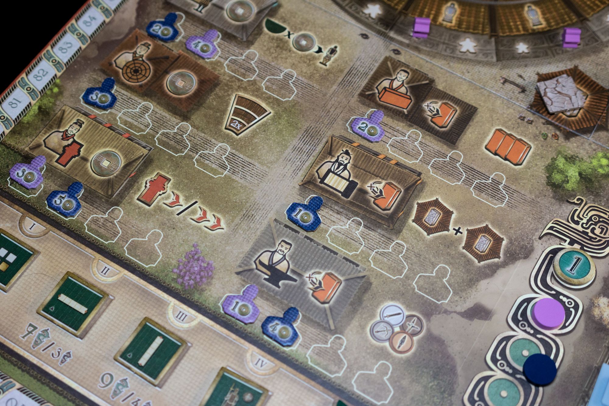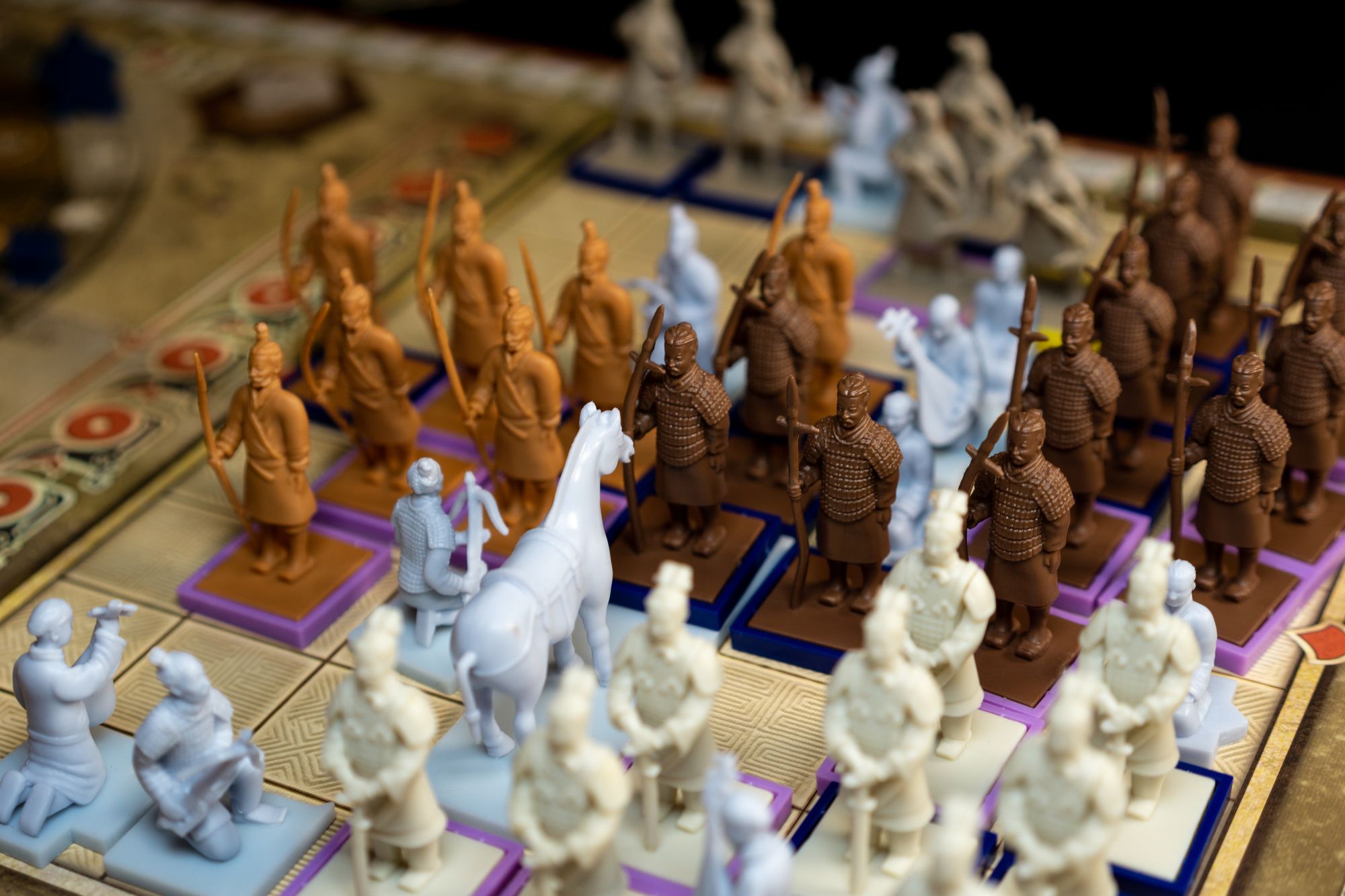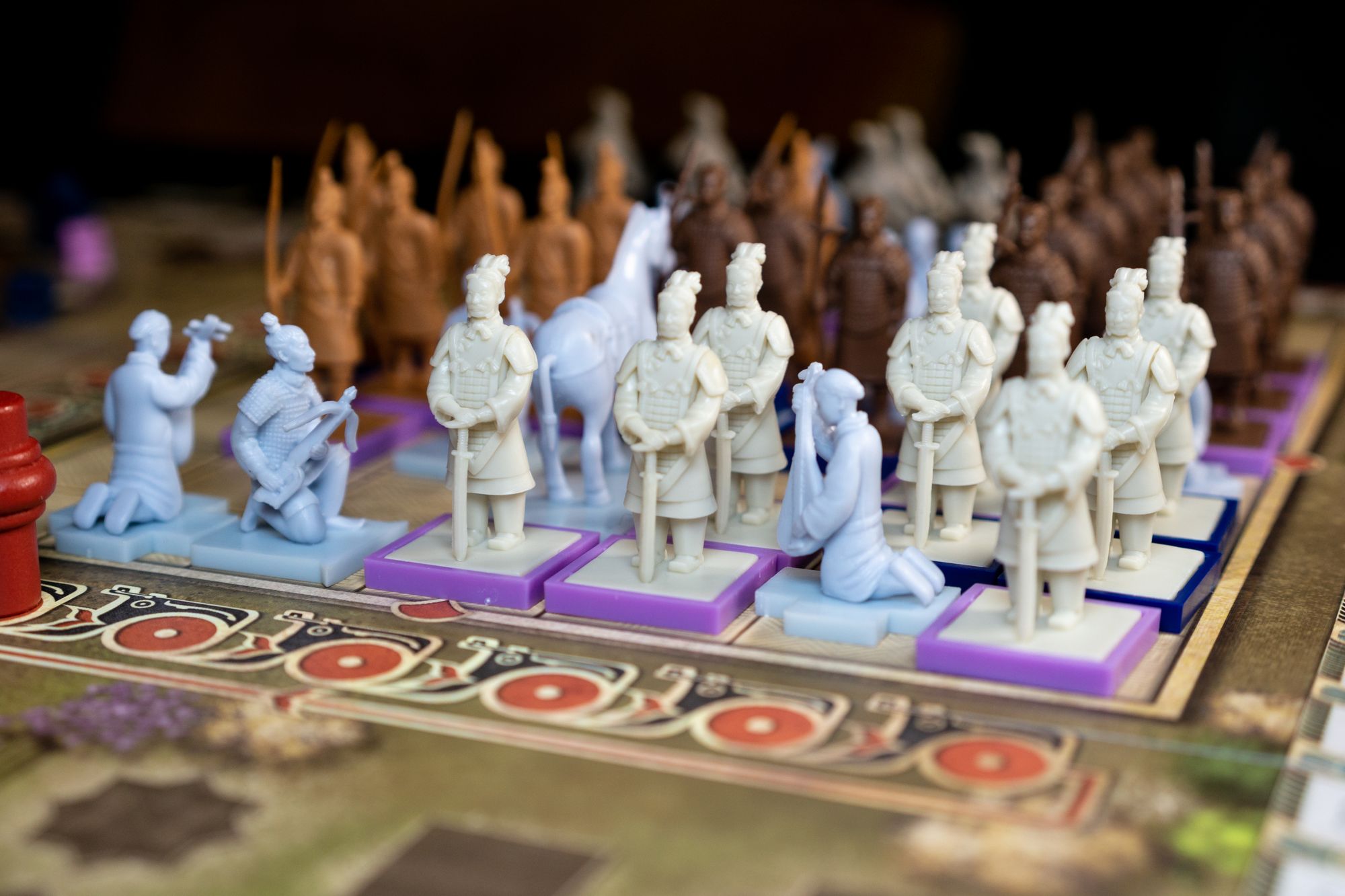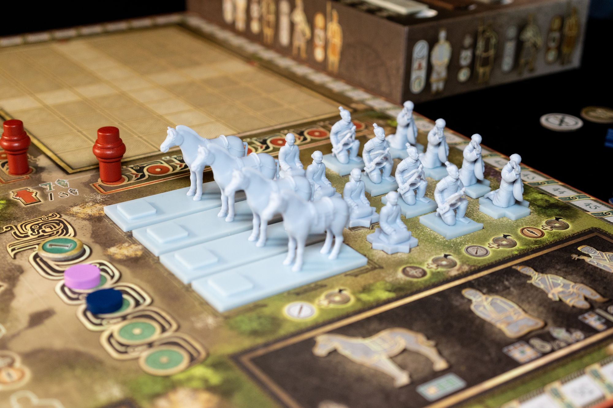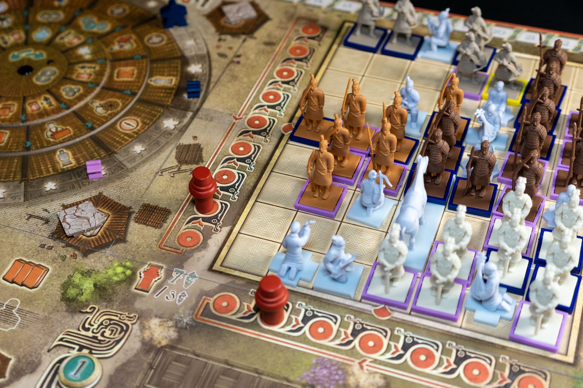 Knowing how each type of miniature works is essential to perform well in Terracotta Army; during my first teaching, I learned that I had a significant advantage over my opponents since I knew the rules well and was better informed about all the possibilities. Placing miniatures and what this implies should be the primary focus when teaching this game. Placing miniatures on the grid can induce some analysis paralysis since there is a lot to consider when placing (round scoring, group scoring, specialists, dominance, presence, etc.)