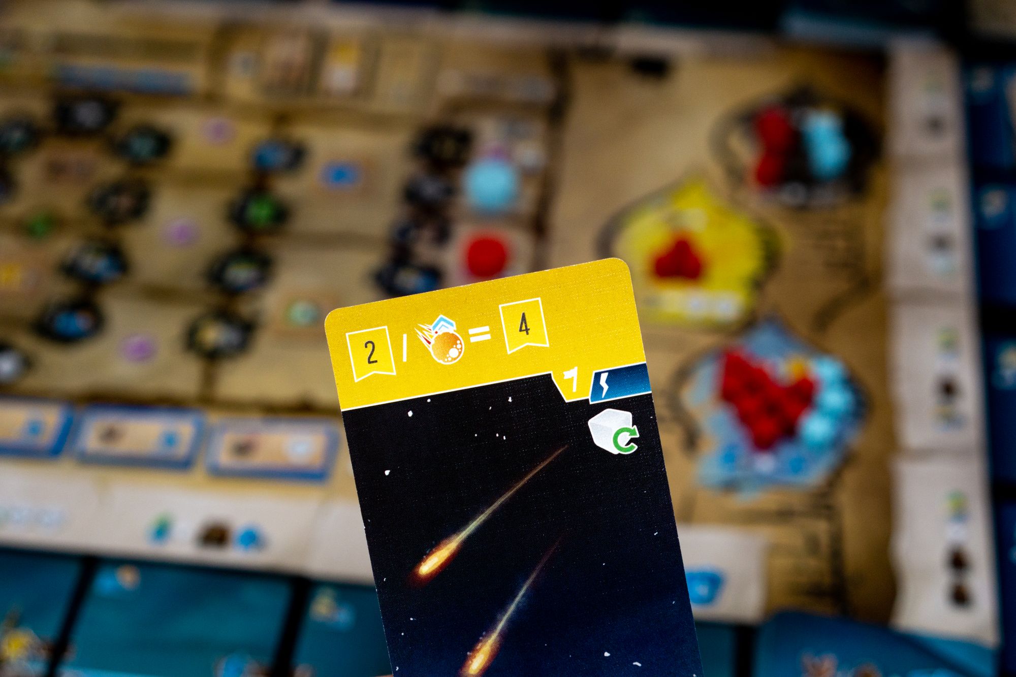 Your goal is to influence tribes, progress on the journal track, collect a combination of cards, and build upgrades to create powerful scoring opportunities unlocked with the Space and Inspiration cards. Â