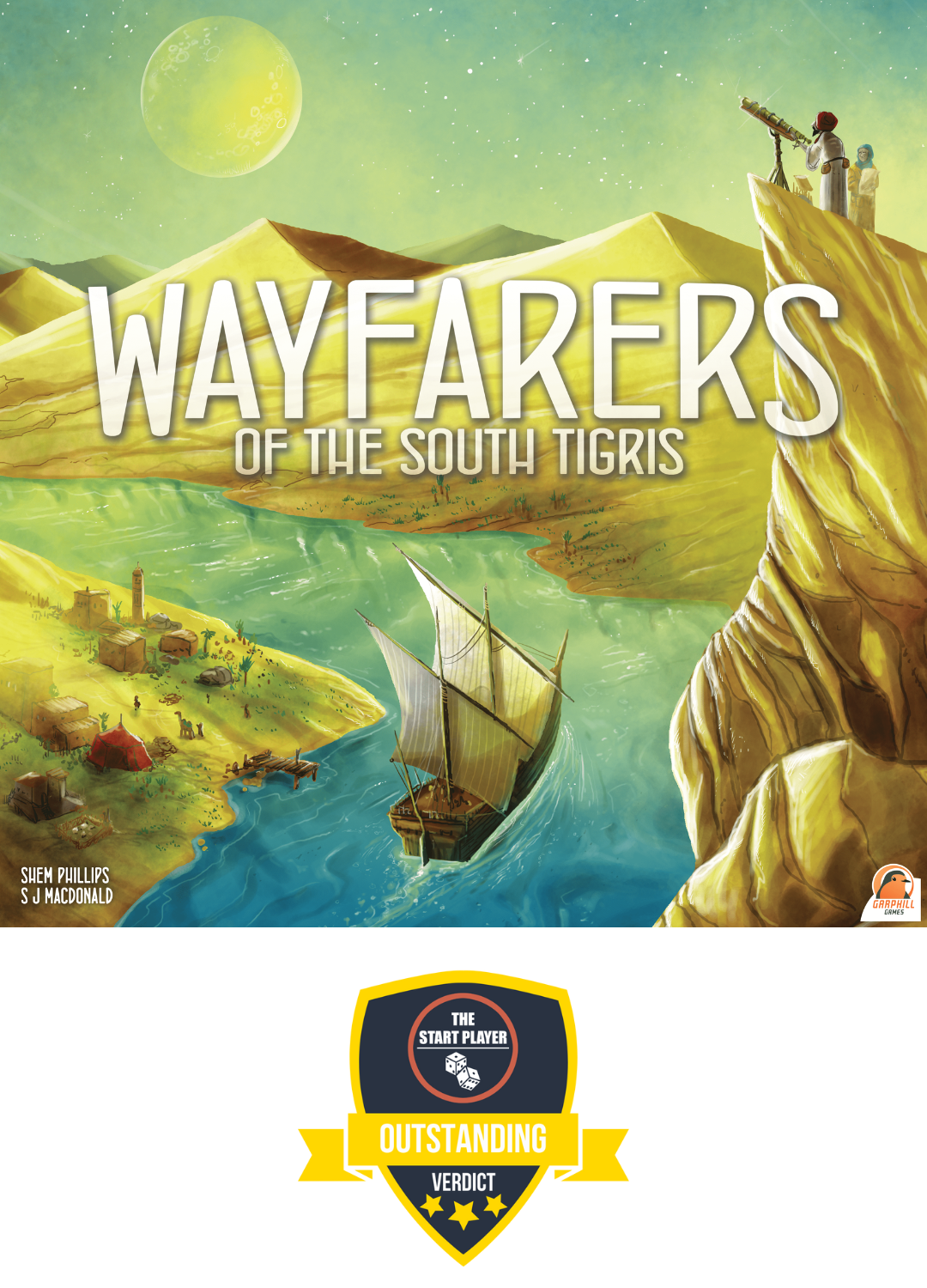 Wayfarers of the South Tigris is set during the height of the Abbasid Caliphate, circa 820 AD. As brave explorers, cartographers and astronomers, players set off from Baghdad to map the surrounding land, waterways, and heavens above. Players must carefully manage their caravan of workers and equipment while reporting back regularly to journal their findings at the House of Wisdom. Will you succeed in impressing the Caliph, or lose your way and succumb to the wilderness?
