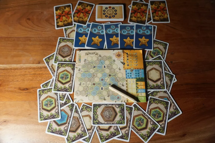 We absolutely love Roll(Flip)-and-Write style games, these are great to play because they have almost no set-up time and are done within 30 minutes most of the time. This year we bought a lot of these type of games. This one reminds us most of Encore!. In Explorers you set out to explore a map by traveling through the different terrain types.