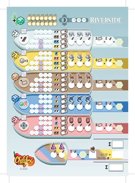 In Riverside you operate as a tour guide to attract tourists to your tour boats. Once you've attracted the tourists you get to take them on excursions. The game involves a lot of careful planning and you can set-up your actions in a way that there is a lot of combo-ing possible.