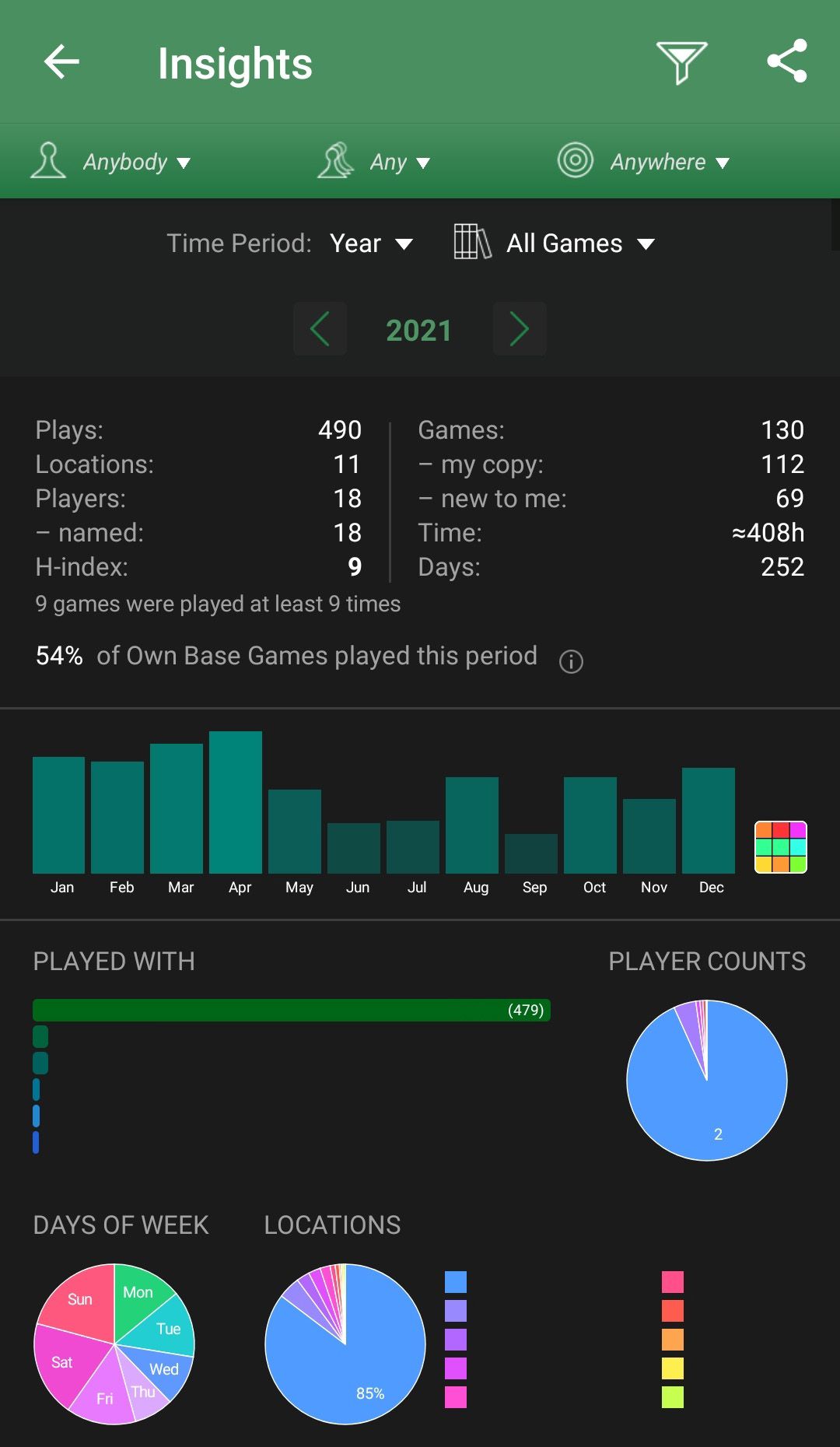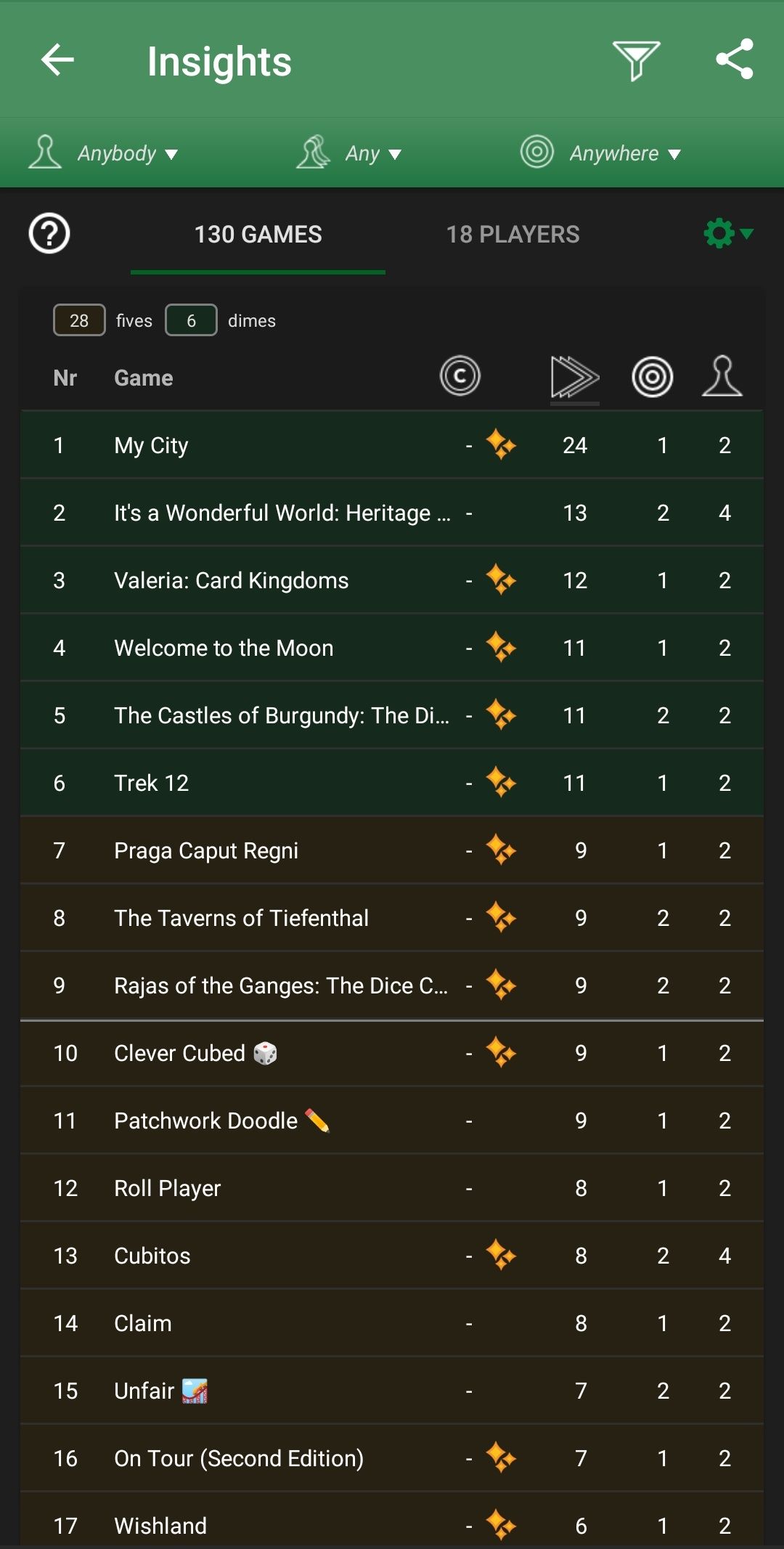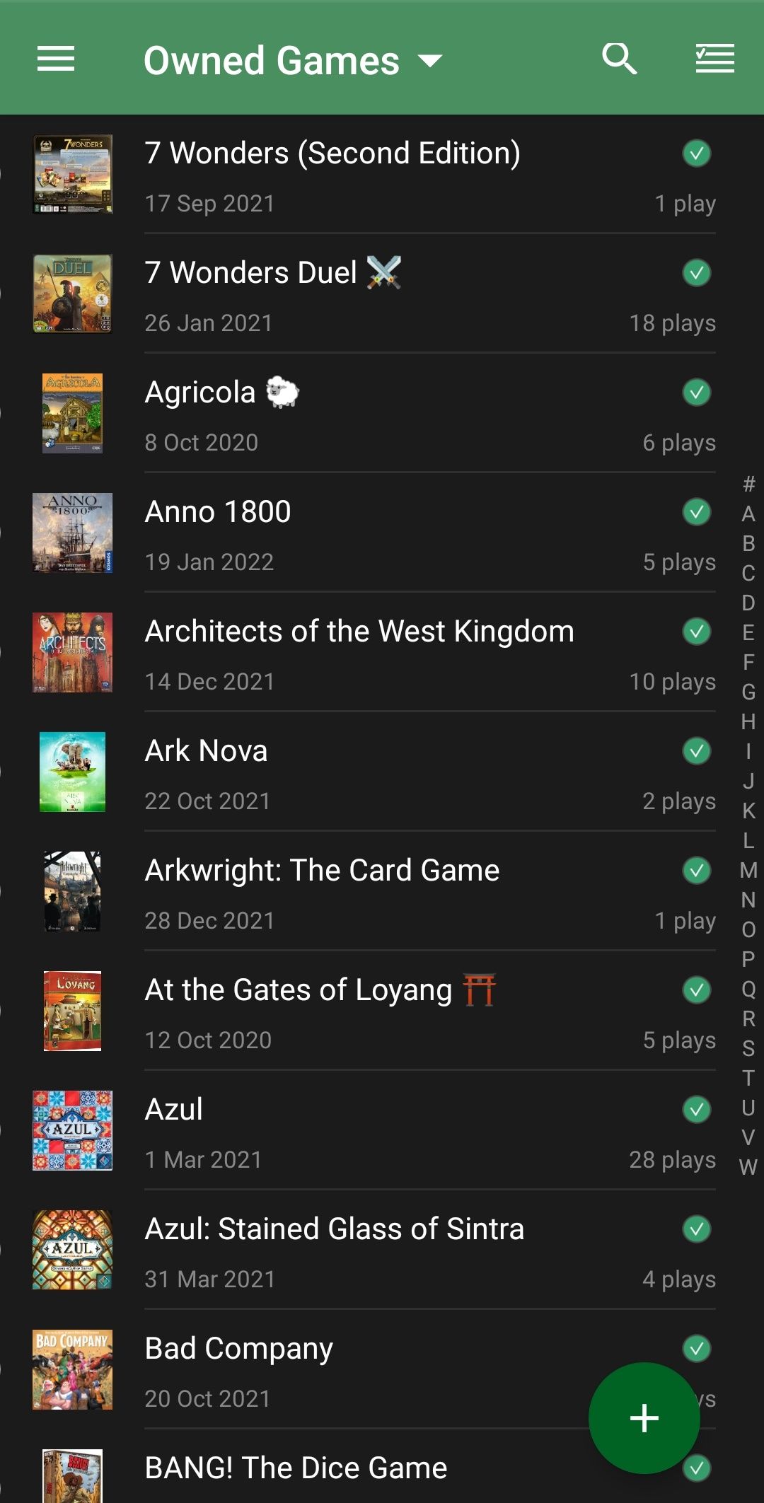 Now that I have my collection in my pocket I can use it to find games we would like to play. For example if I have a game night planned I can look through my collection to find a game we want to play matching the number of players. You can also get insights into how many time you've played certain games. A statistic I use to determine if a game should stay in my collection or not. I can answer questions, why did I not play this game for over a year? Don't I like it enough?